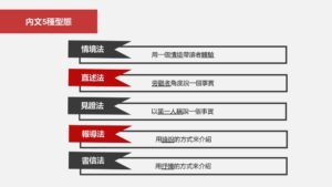 這份檔案中我會談到如何應用「人、事、時、地、物」五個視角裡面的可能元素,並且交互組合出源源不絕主題的方法。