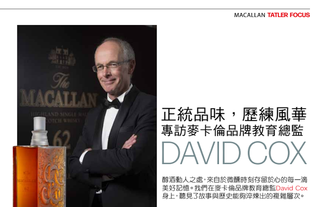 David身為品牌教育總監,麥卡倫品牌融合了他的個人風格和深厚的品牌歷史傳承。他以對於品質與傳統的堅持,輔助品牌不斷推出廣受消費者歡迎的產品,更專注在說故事的方式和體驗的過程,讓每個消費者獲得獨特難忘的品賞經驗;最後,和不同領域人員的合作過程中,說故事的方式並非重點,而讓更多人知道產品的品質與價值,才是David更在乎且關心的部分。